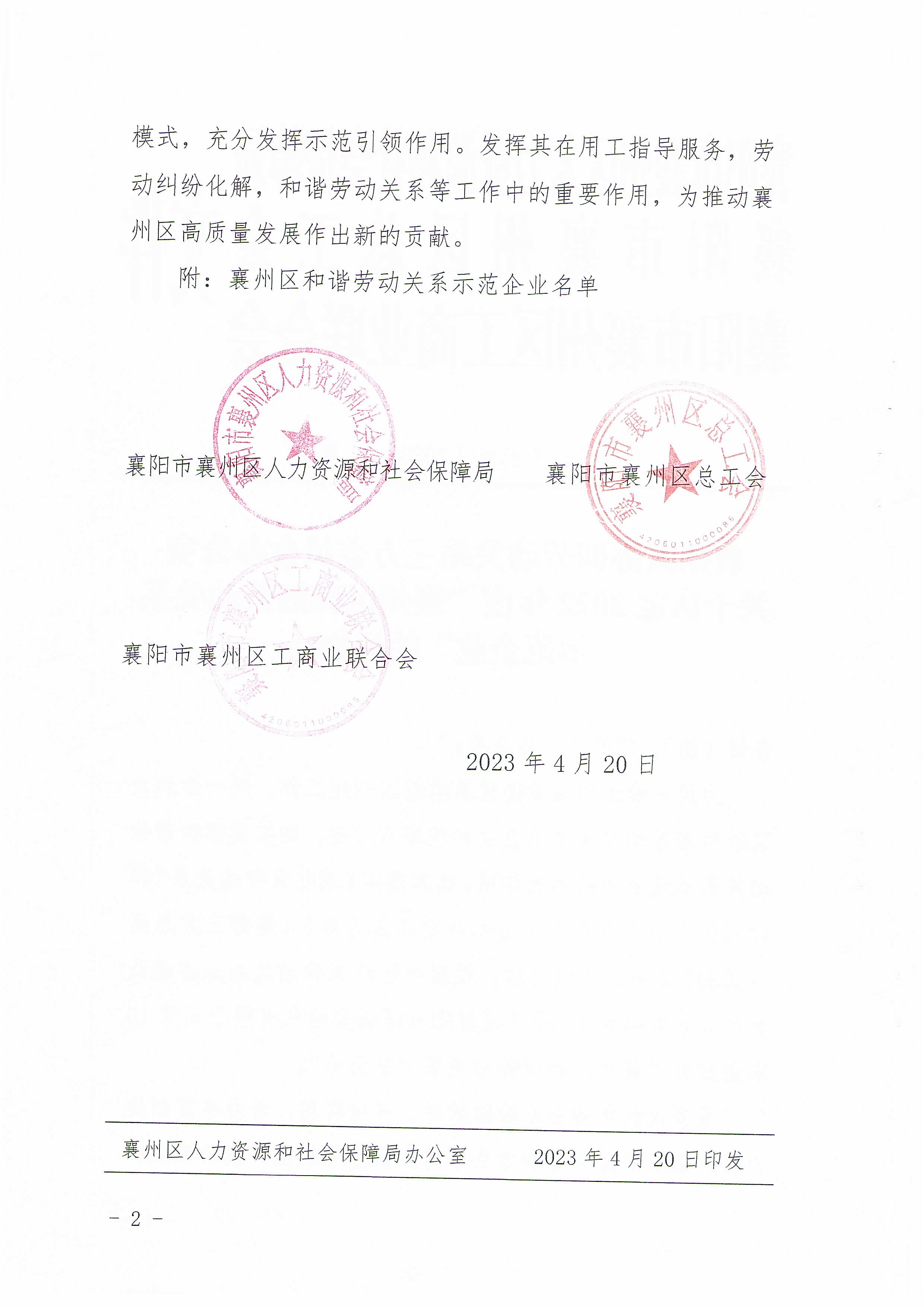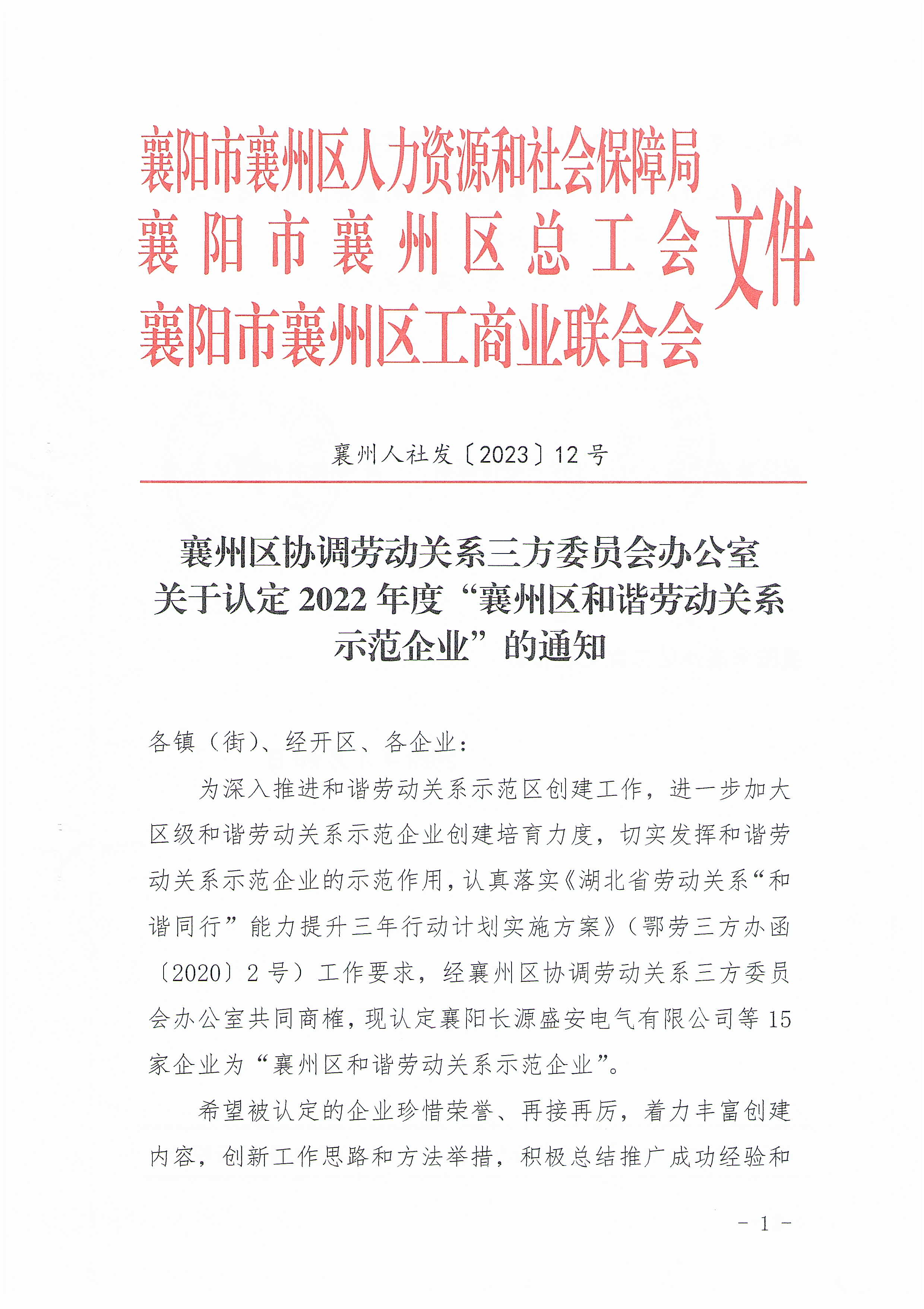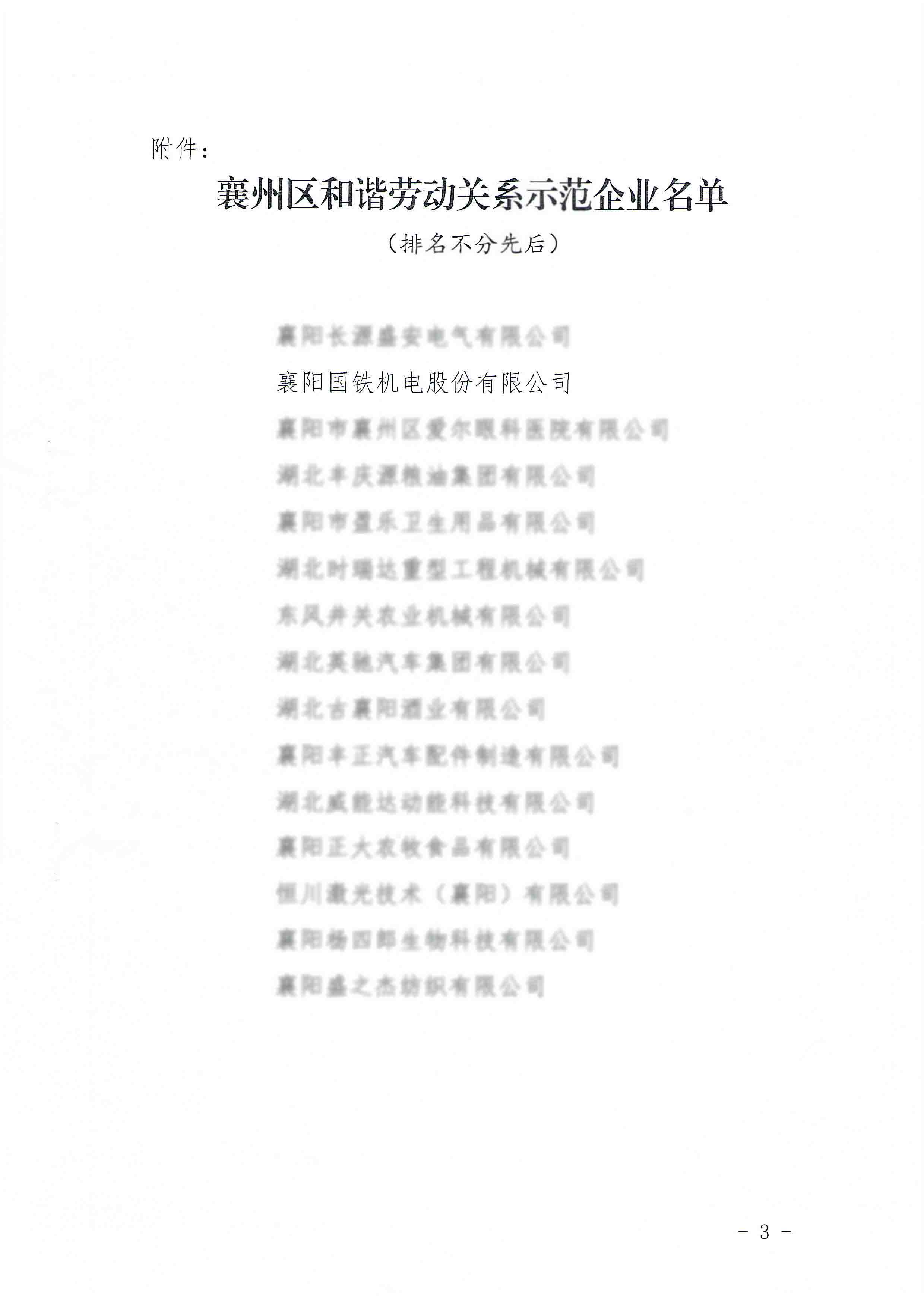 國鐵機(jī)電獲“襄州區(qū)和諧勞動(dòng)關(guān)系示范企業(yè)”榮譽(yù)